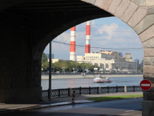 I woke Di, who agreed to transfer over to one of the buses following “Route 2”. We didn’t have to wait long before a Route 2 bus arrived, and we boarded. The first part of Route 2 was identical to Route 1, so once again we saw the KGB Headquarters, the Stock Excahange, etc, until we stopped at Bolotnaya Square for the driver to eat his lunch. It seems that the drivers on the two routes stop for half an hour to eat their lunches at quite different times. Still, it was nice to watch the bridal couples on the bridge again.
