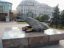 I had a short ten minute walk to the meeting point for the tour, which was Solovetsky stone, just to the eastern side of Lubyanka Square. This large stone, set on a granite plinth outside the KGB Headquarters, was brought in 1991 from the Solovetsky Islands, the location of the Solovki prison camp, which was part of the gulag system under Stalin. Today, the stone forms an important monument to the suffering of the tens of thousands political prisoners during Soviet times.