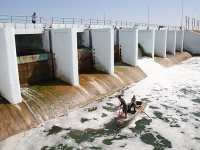 One of the sluice gates was open today, allowing water to flow southwards towards Uzbekistan. Whether the waters actually reach that far is uncertain; apparently not a single of drop of water from the Amu Darya (the Aral Sea’s tributary in Uzbekistan) actually reaches the Aral Sea these days – an amazing statement about over-allocation of water when I remember the raging torrent of the Panj River that I witnessed last week in Tajikistan, which is one of the Amu Darya’s tributaries. In contrast, the Syr Darya that flows into the Aral Sea through Kazakhstan still contributes a viable flow of water into the Aral Sea; unlike Uzbekistan and Turkmenistan, Kazakhstan grows almost no cotton (a major user of irrigation water in Central Asia).