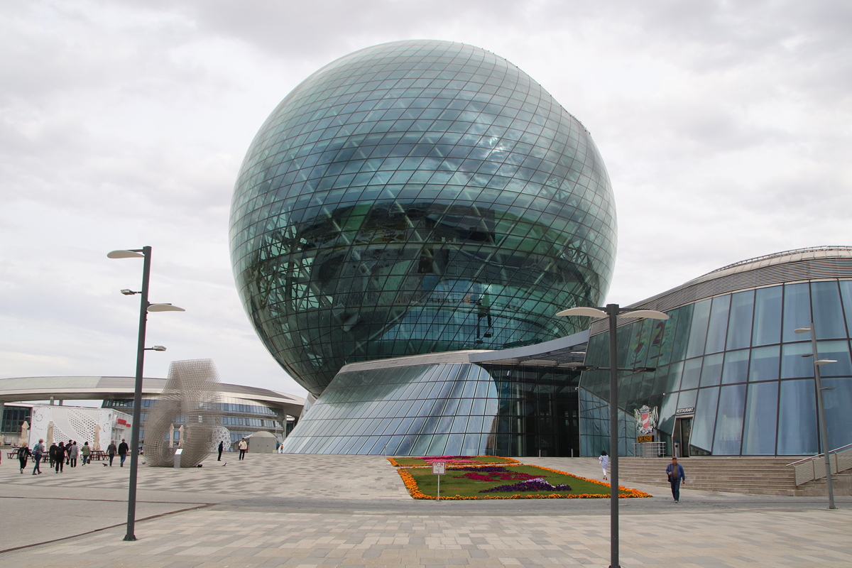 A specially built complex of futuristic buildings was constructed in the south of Astana to house the Expo, and these buildings are now being converted into a range of post-expo uses including commercial space for corporations, startups, education and research entities, conference facilities and hotels. Kazakhstan’s pavilion, a glass globe with eight stories (but really 18 stories in height) is still in use to house its brilliant display on “Future Energy”, and this is where we spent the afternoon.