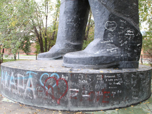 Located right behind our hotel, the white busts were lined up in two rows facing each other somewhat like rows of gravestones. At the end of the rows, a very tall dark grey standing statue of Lenin that used to stand in the nearby square seemed to preside over the surroundings. I thought it was fascinating that local authorities would go to such great pains to remove the statues from public places and yet erect them in this small public park.