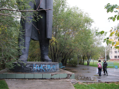 For those who wished, a walk around Semey followed by a performance was planned, but as it was getting dark and several of us wished to visit one of Semey’s more unusual sites – a park lined with busts of Communist leaders (mostly Lenin) – we left the group and reached the park just as car headlights were being turned on for the evening.