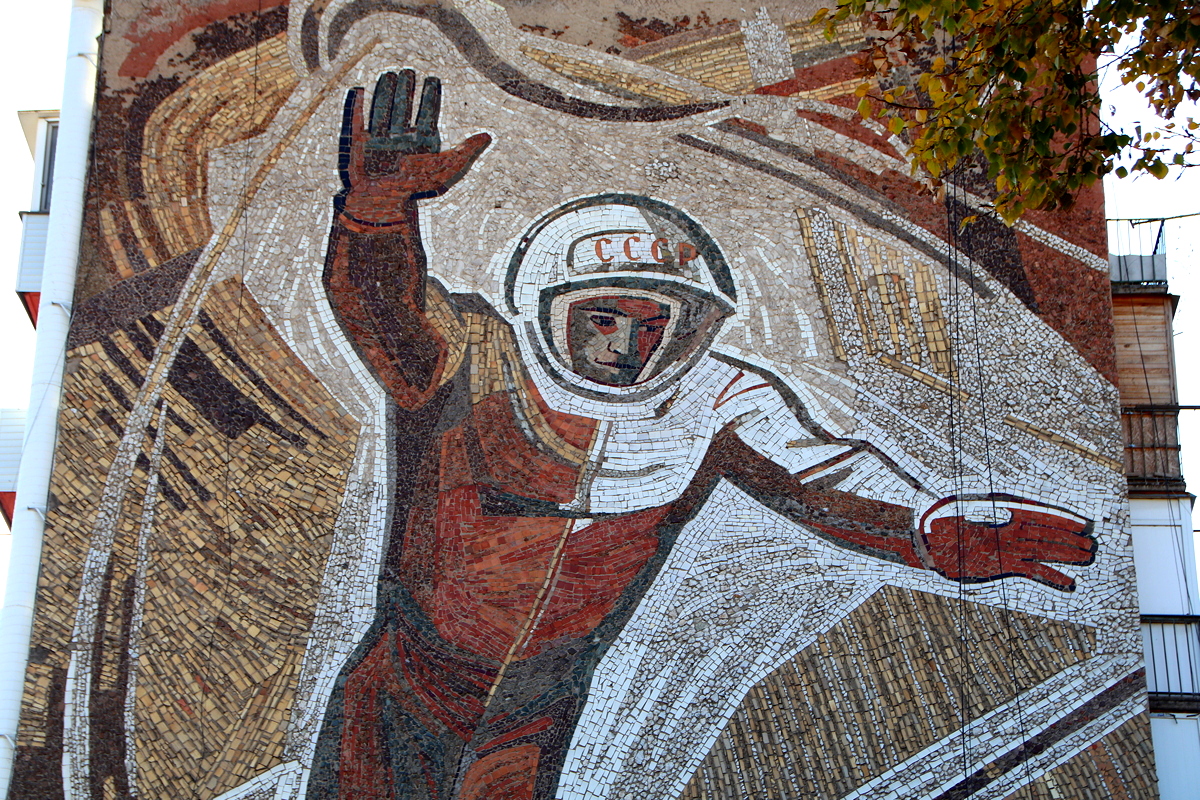 I continued my walk northwards along Prospekt Nurkena Abdirova past some lovely mosaics, the independence monument, the performing arts theatre, then taking a side road to visit the memorial to Yuri Gagarin. Karaganda is a lovely city of half a million people, and it was looking its best this afternoon in the golden sunlight under the clear, blue sky. My walk concluded at the hotel at a little after 5:30pm; it was good timing as the light was just starting to fade a bit. I was ready to enjoy a good rest in the cosmonauts’ former abode.