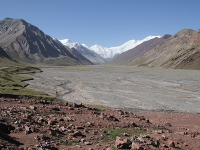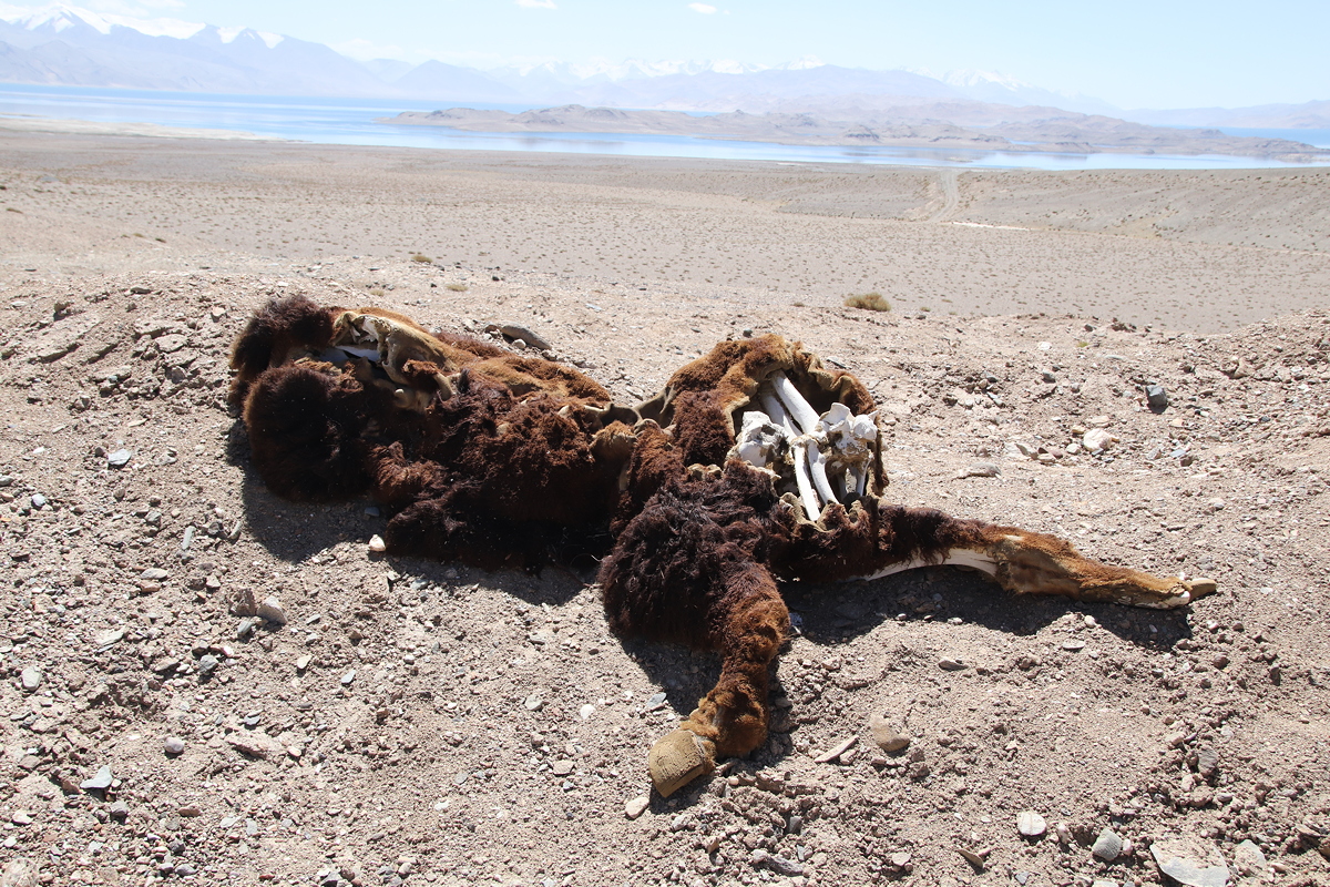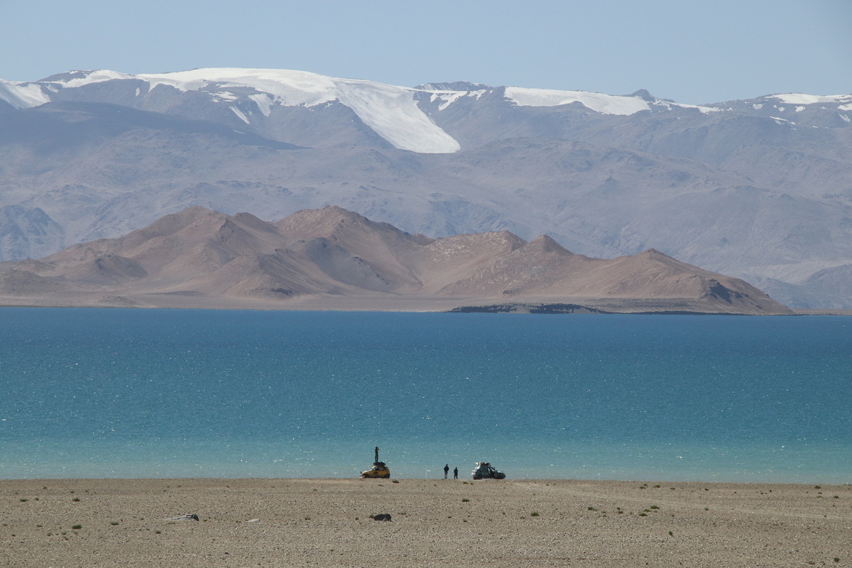 The landscape became more stark as we travelled further into Tajikistan, and would properly be called a high altitude desert. After several brief photo stops, we made a longer stop on the shores of Kara-Kul Lake for lunch. This high altitude lake was formed millions of years ago as a result of a meteorite impact. After lunch, we walked to the shores of the lake to enjoy the stunning views of the blue water with the snow-capped Lenin Peak (which reaches 7,134 metres) as its backdrop