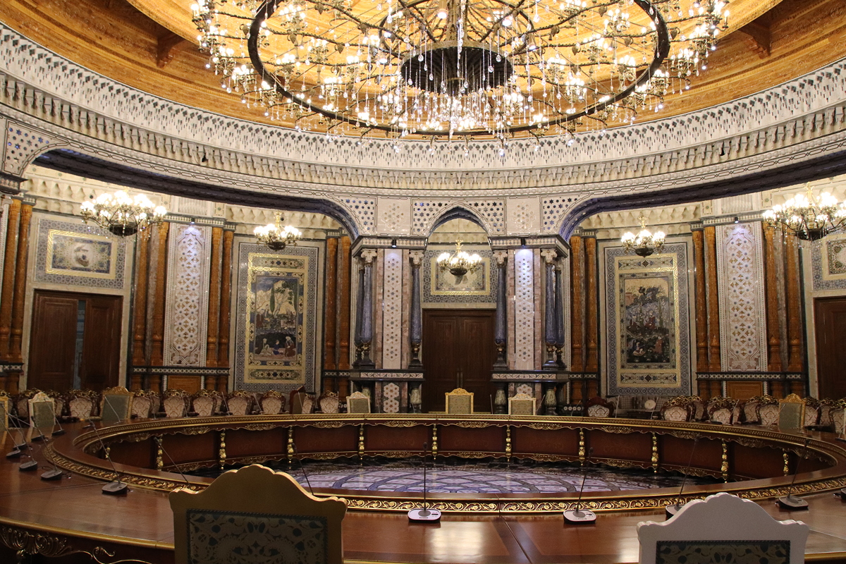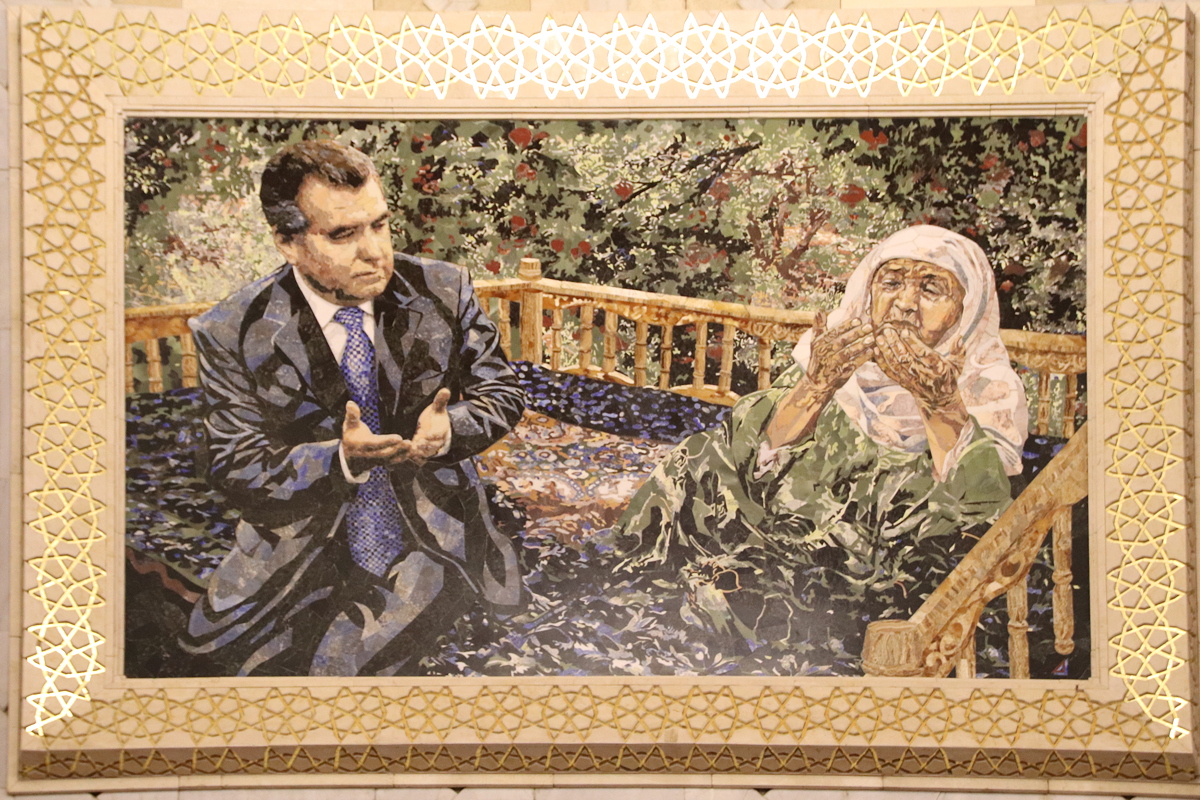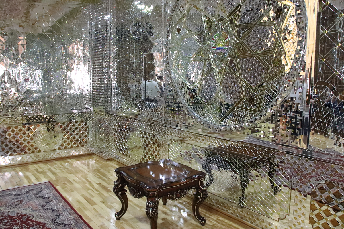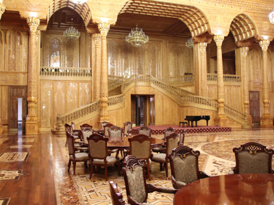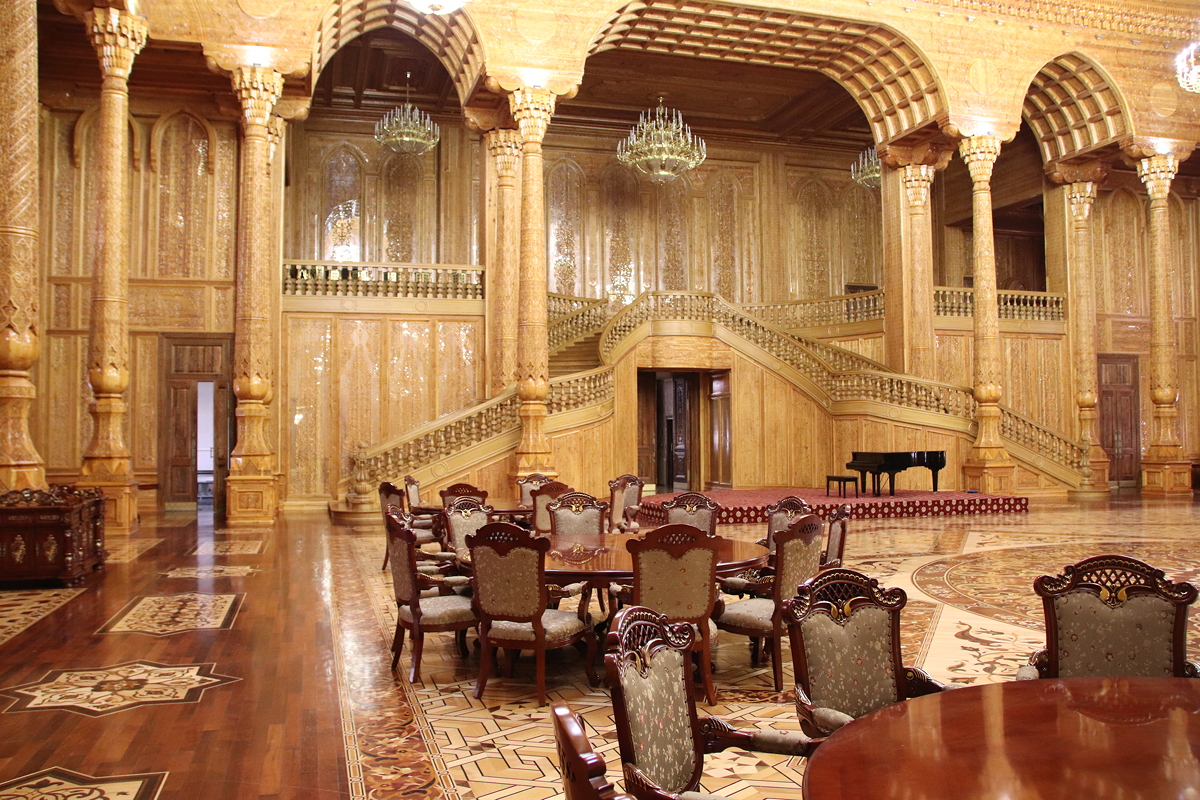 And indeed the interiors of the building were extravagant, with different halls and rooms have different Tajik-inspired themes and construction materials – there two mirror-walled rooms, a huge hall built of aromatic carved cedar timber, another large conference room of gold, yet another conference room built entirely from precious stones (including artistic wall mosaics also formed from precious stones, of which pride of place was given to the mosaic of the President with his mother).