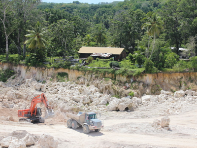 We deviated almost immediately from the ring road and started heading inland, past the huge abandoned phosphate crushing factory to an area where phosphate mining was currently taking place. The decline of Nauru’s phosphate mining industry was immediately apparent, as there were just four items of machinery visible in the quarry – two scoopers and two large trucks for transport.