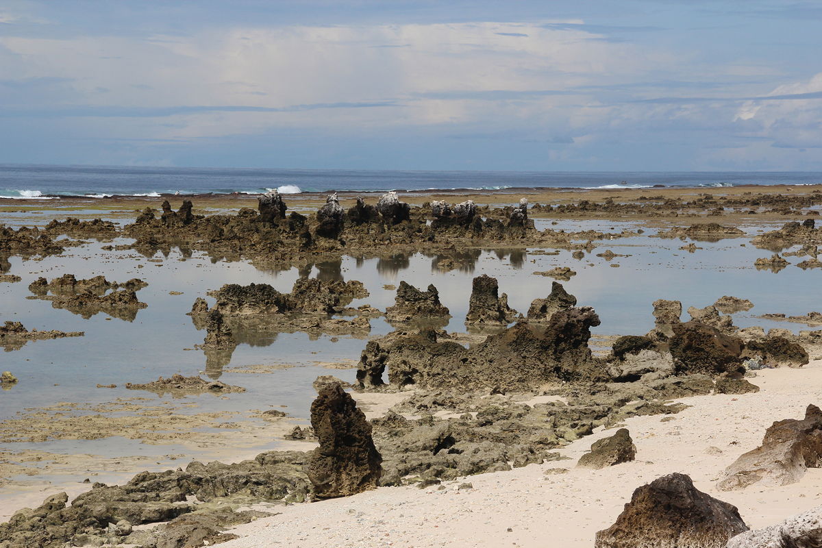 I asked the driver to stop about two kilometres short of the hotel because the sun had come out and we were passing the coastal strip with coral pinnacles where I had thought of walking before breakfast. The walk back to the hotel took about half an hour (with lots of stops for photos), but it was wonderful; this section of the coral reef is perhaps the most spectacular in Nauru. However, half an hour’s walk in the hot sun was enough to work up a profuse, salty sweat, but fortunately I had time to have a refreshing shower and change clothes before checking out from the hotel at midday.