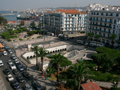 Tim and I had planned a fairly relaxing day today, which was just as well as we both dealt with the accumulated deluge of e-mails that were waiting for us.  Nonetheless, we still found time for a light lunch and an hour-long walk though the streets of the Nouvelle Ville section of Algiers just to the south our hotel, characterised by French era buildings, all uniformly decorated in white with light blue trimmings.  This was a more elegant section of town than the more northerly zone we had explored on foot before going to Ghardaïa, and as a result the buildings were better maintained and the shops were of a more up-market variety.