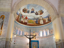 The interior of the building was a work of art in itself.  Its walls were covered by various small memorial plaques, and on either side of the main altar it had scenes from the last week of Christ’s earthly life (to the right) and scenes from the history of the early Christian church (to the left).  Above the main altar was a stunning mural showing the infant Jesus as the centrepiece or worship above the modern city of Algiers and a mosaic that we had seen in Tipaza dating back to the early days of the Christian church in Algeria.  Beneath the mosaic were the extraordinary words in French meaning “Our Lady of Africa, pray for us and for the Muslims”.