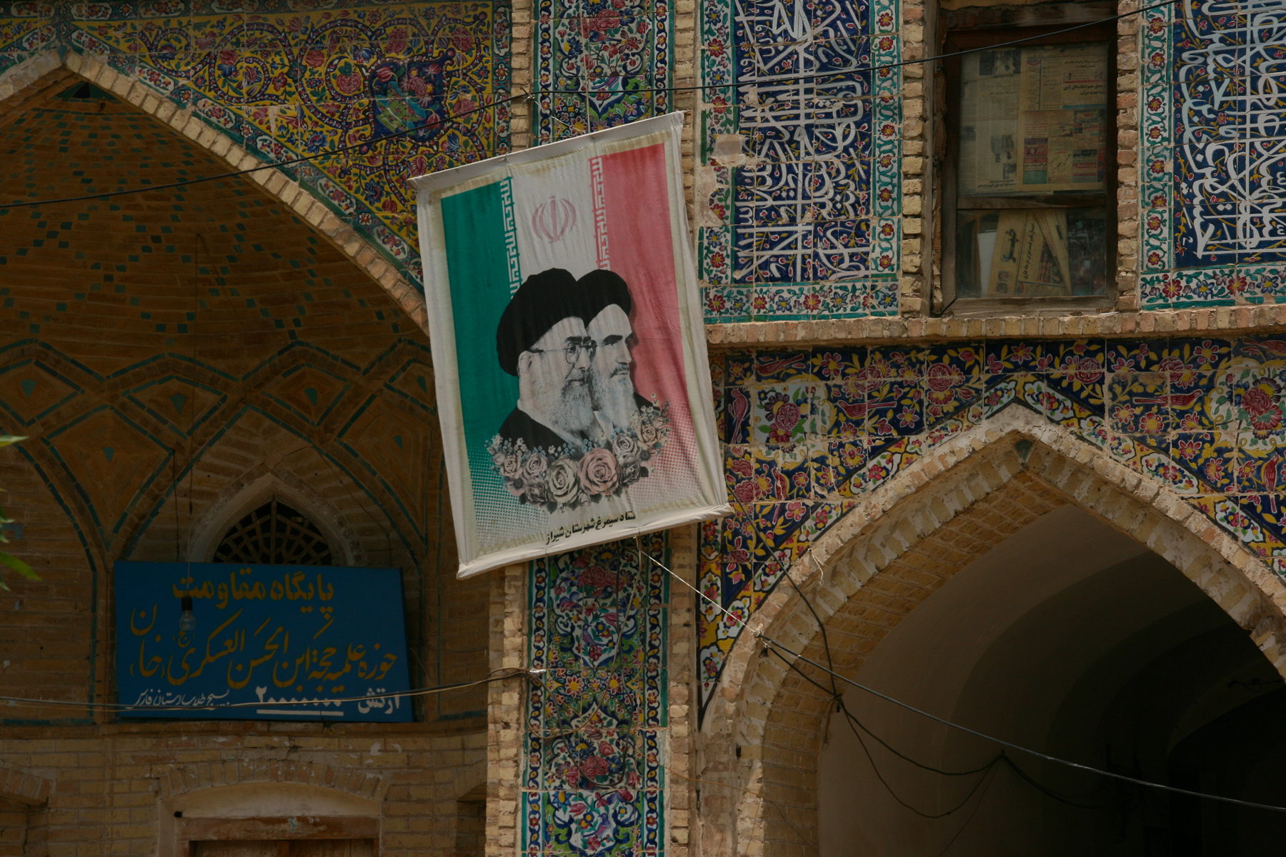 Our eighth stop was just to the edge of the bazaar, this being the Vakil Mosque (which you may know better as the Masjed-e Vakil).  This large mosque, also built in the open Samarkand style around a square courtyard was, like the madrasah, intricately decorated with ceramic tiles, and contained a fascinating unpublishable secret.