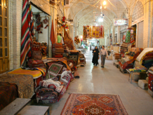 Our seventh stop was less of a stop than a walk through the cruciform-shaped Vakil Bazaar in the old centre of the city.  The bazaar was a riot of colour and action, all in the welcome shade of the high vaulted brick ceilings.  Various sections of the market were selling household goods (often imported from China), carpets, handicrafts, sweet-smelling spices, clothes and shoes.  In the centre of the bazaar was an open-roofed area where a pool with a small fountain was providing welcome humidity and relief from the heat for passers-by.
