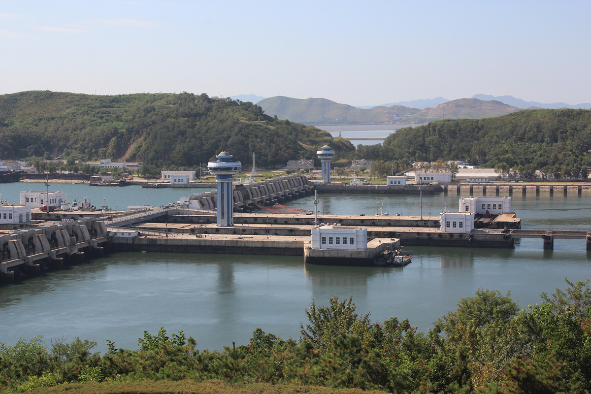 The West Sea Barrage closes to road traffic between 10am and 6pm each day to allow ships to pass between the West Sea and Nampo port. We managed to cross the barrage, travelling south, comfortably at 9:50am.