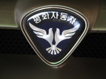 We visited two of the buildings, the Heavy Industry Hall and the Light Industry Hall, under the guidance of an especially fluent and articulate guide. The Heavy Industry Hall was the more impressive of the two, with some impressive and surprisingly up-to-date equipment on display, and an very impressive white marble sculpture of Kim Il Sung accompanied by three smiling workers. Special emphasis was placed on CNC (Computer Numerical Control) equipment, hydro-electric developments, mining for minerals, and North Korea’s own cloth called ‘vinalon’ that is made from limestone. Three examples of North Korean vehicles were on display, all from the Pyonghua (“Peace”) factory and clearly marked with the company’s logo of two doves, signifying Korea’s wish for reunification.