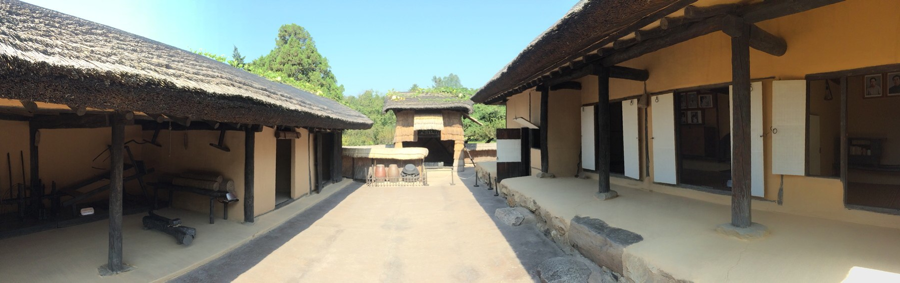 Our first visit for the day was Mangyongdae, the birthplace of Kim Il Sung. Situated in Pyongyang’s south-western suburbs, Mangyongdae is a lovingly restored traditional Korean home that belonged to Kim Il Sung’s grandparents. Although it was originally just one of dozens of similar houses, it is now set alone in beautiful green parklands with music written by Kim Il Sung coming from the trees and bushes in the park.