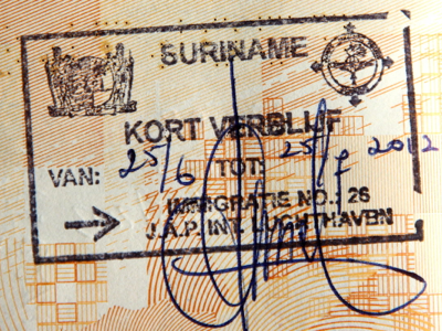 I was getting fairly tired by the time of my third and final flight of the day. A two and a half hour night flight landed me at Suriname’s main international airport, Zandery, at a few minutes before midnight, although by the time I reached immigration, midnight had passed and thus my passport shows an entry stamp of 25th July.