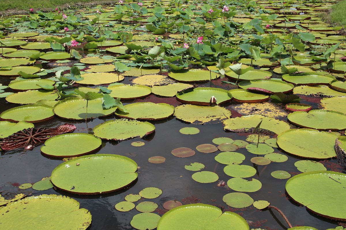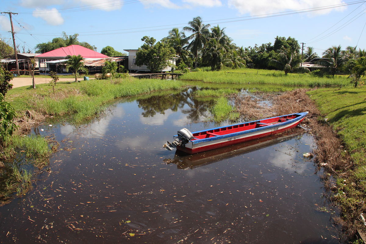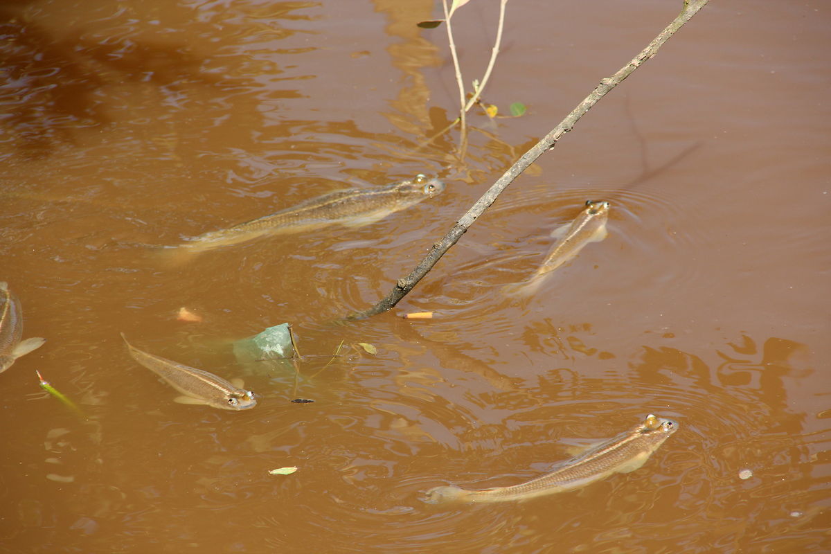 Following the better-than-expected dolphin spotting, we visited an old sugar plantation. Originally Dutch-owned and staffed by Javanese slave laborers, the plantation stopped growing sugar when slavery and the subsequent system of indentured labor were abolished, and the inhabitants (still all Javanese) now concentrate on fishing and cattle raising. Like all the plantations along the Commewijne River, this one had a system of canals with locks and sluice gates to control the flow of water, to prevent flooding and to keep the fresh water separate from the salty tidal water of the river.
