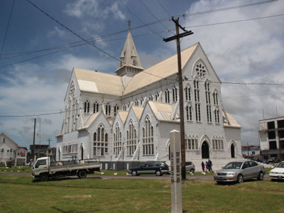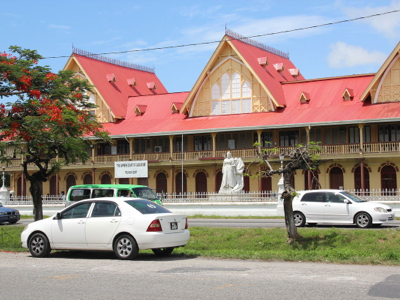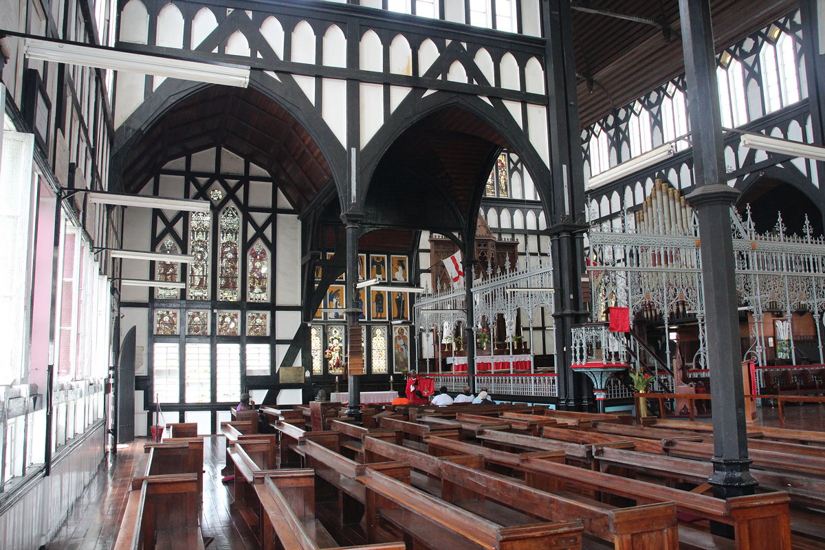 So, given that somewhat pessimistic parameter, I set out with Sean to explore those “one or two things”. After driving along Georgetown’s main commercial thoroughfare, Regent Street (which seemed vaguely like a cross between the main street of Appila (South Australia) and a suburban side-street in Port Moresby (Papua New Guinea), we arrived at Georgetown’s most impressive building, St George’s Cathedral. This Anglican, Gothic-style cathedral is constructed of timber, and it is said to be the tallest wooden building in the world. Despite needing a bit of maintenance here and there, it certainly was an imposing building, set in its own circle of land, somewhat like a huge traffic roundabout.
