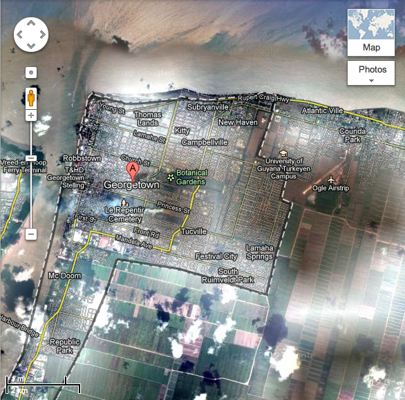 Sean finally arrived at 11:25 am, which I understand is “not bad” punctuality by Guyanese standards, although the long wait (or so it seemed to me) was a bit annoying when I was itching to get out and explore the city. However, to put it into perspective, it was only a little more than the same amount of time as I had spent yesterday standing in the immigration queue at Port of Spain Airport – things move at a different pace in this part of the world, it seems.