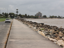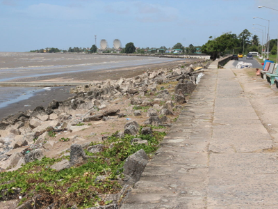 Georgetown is situated slightly below sea level, and it is protected from the ravages of the Atlantic Ocean by a long seawall and a system of drainage canals built by the Dutch during their period of occupation. A short drive north brought us to the seawall, which I found less notable for its aesthetic beauty than the huge amount of rubbish blowing across it and the passionate endeavors of the young people ‘making out’ on the concrete benches. Although the waters of the Atlantic did not seem especially rough today, the waves nonetheless had a dirty brown muddy appearance that was, according to Sean, entirely typical. I don’t think that the beach resorts of the Caribbean have much to fear from the competition of Georgetown’s sea front.