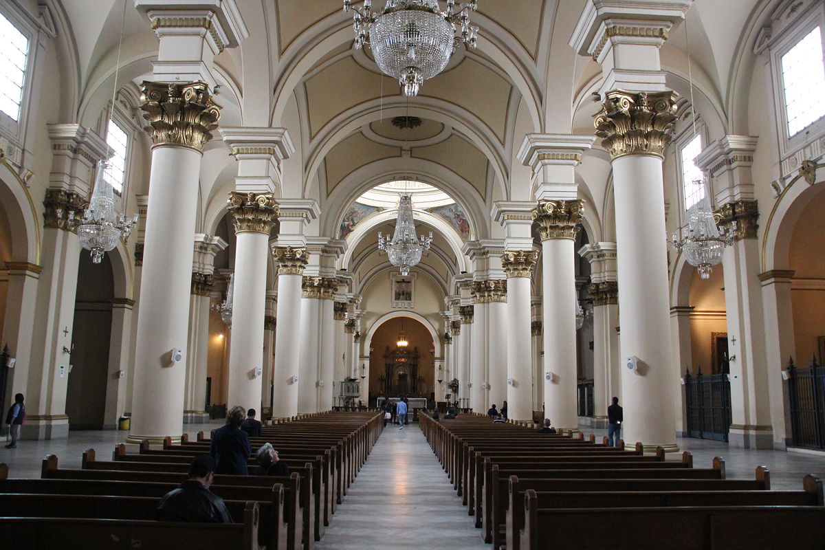 The buildings on the western and eastern side of the Plaza de Bolívar were considerably more elegant than those to the north and south. On the western side, the low Alcadía (Mayor’s Office) could be seen, a graceful and dignified building dating from the early 20th century. On the eastern side was the Catedral Primada, completed in 1823 in neo-classical style. This is Bogotá’s largest church, and compared with the baroque buildings I had seen recently in Quito, decidedly plain and surprisingly dark. Next to the cathedral was the Plaza de Bolívar’s only building dating to Spanish colonial times, the Capilla del Sagrario.