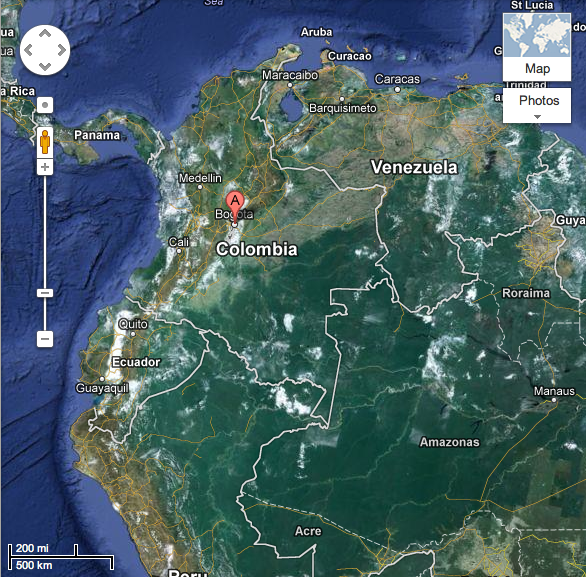 I woke this morning to a very different Quito to the one I have come to know and appreciate over the past couple of days. In contrast to the clear air and blue skies I have been enjoying, I looked out my window on a city skyline covered in a brownish-white haze of what was clearly (not a good choice of a word!) photochemical smog. I’m guessing that a katabatic wind flow overnight has caused a temperature inversion in the valley where Quito is situated, trapping the pollutants close to the ground rather than allowing them to disperse. It was not a pleasant sight, and my first thought was “it must be time to move on to Bogotá” – which is what I proceeded to do.