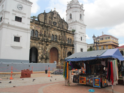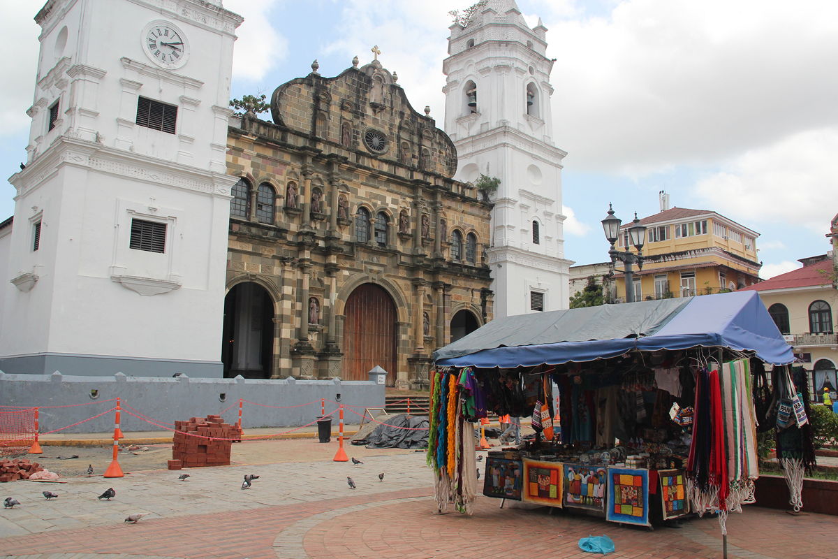 My walk around Casco Antiguo began in the centre of the old town, the Plaza Catedral o Independencia. This plaza was less affected by renovations than most other parts of the city, but as a consequence, much of its area was filled with tented souvenir stalls – so many that it was difficult to get a good view of the huge Iglesia Catedral that dominated the entire northern side of the Plaza.