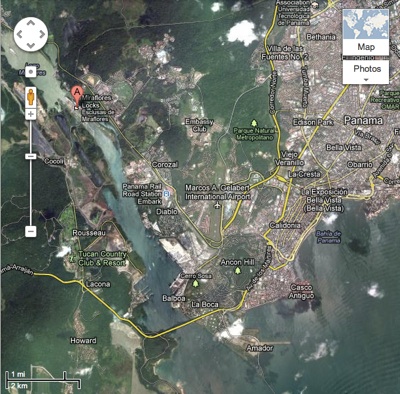 I was thrilled to wake this morning and look out my window to see a sunny day, with clear blue skies and a line of ships waiting to enter the Miraflores Locks at the southern end of the Panama Canal. Although the Canal joins the Pacific and Atlantic Oceans, the actual direction of the Canal is from the north-west (the Atlantic end) to the south-east (the Pacific end).
