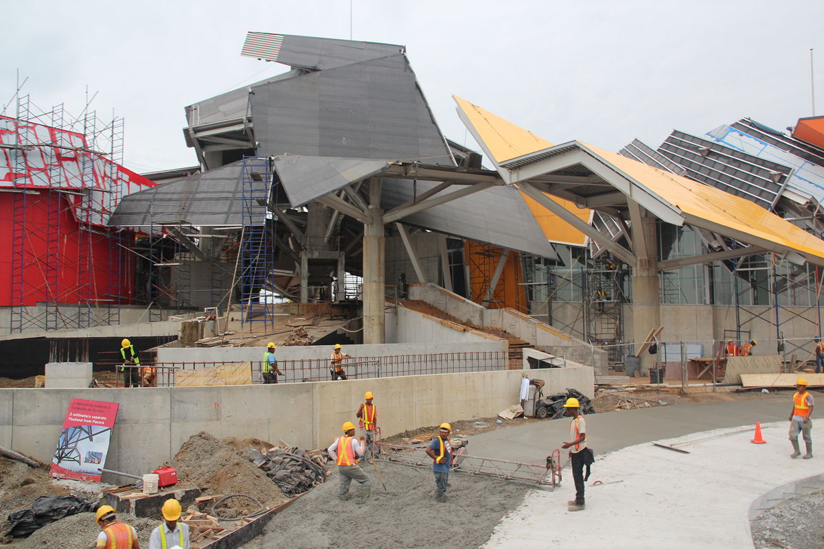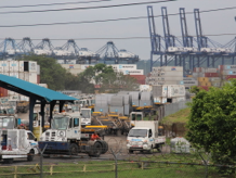Leaving the Miraflora Locks, the bus proceeded south past the vast wharf area and railways sidings that mark the southern entrance to the Canal and on to three small islands that have been connected to the mainland by a long causeway (Isla Flamenco, Isla Perico and Isla Naos). The (former) islands themselves weren’t that interesting, accommodating as they did some restaurants, hotels and marinas, but the scenery across the water from the causeway was good, and we did pass the construction site for the BioMuseo (which will be quite an eye-catching building when it is finished) as well as the convention centre whose main (only?) claim to fame is that it hosted the Miss Universe pageant in 2003 (today’s extreme piece of trivia!).