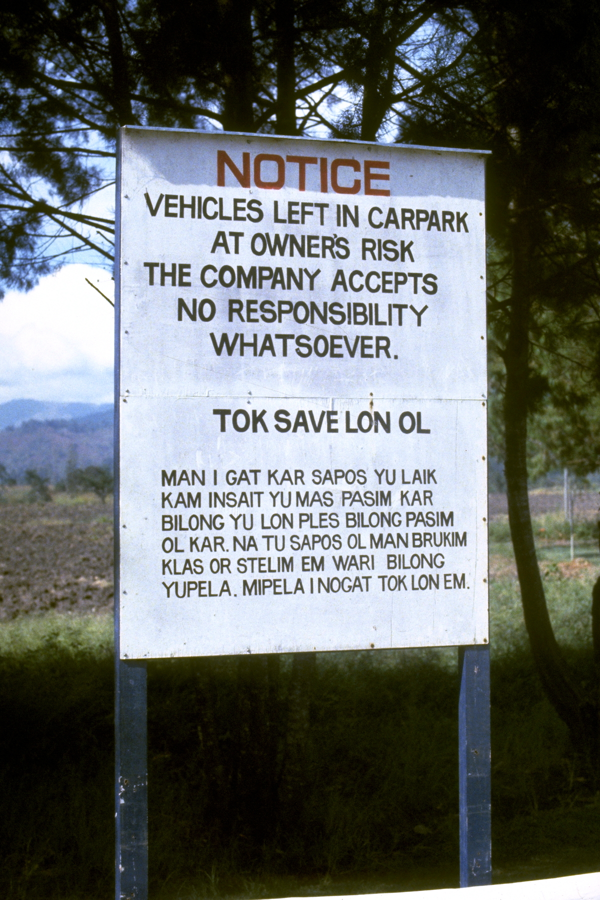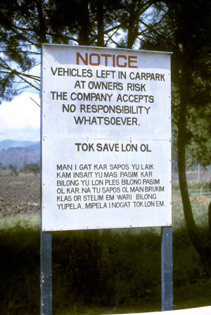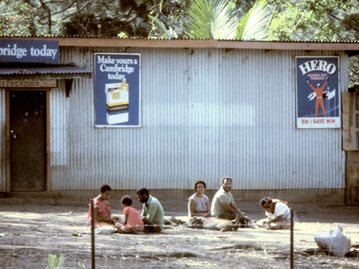 At the time, an election campaign was underway in Papua New Guinea, and many candidates were giving away T-shirts with their photographs and slogans on them. Rothmans decided to adopt this strategy, so they made and gave away thousands of “Hero” T-shirts with the Pidgin slogan “Em i save win” (or “He knows how to be a winner”) on them. The campaign went very strongly – until election day when thousands of Highlands people tried to vote for ‘Hero’, only to be told that he did not really exist. Sales of Hero tobacco flopped completely after that time, and by the time of our visit the brand was being dropped. Consequently, we were all offered a free “Hero” T-shirt as a souvenir.