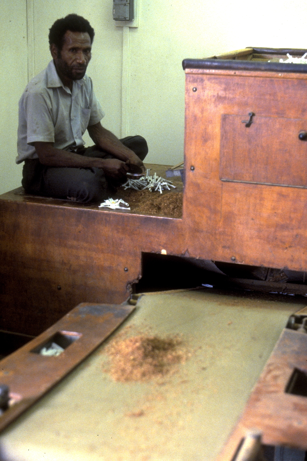 I wasn’t thrilled about taking my students to a cigarette factory, but the Rothmans cigarette factory was one of the region’s largest processing factories and was situated within a large plantation growing the tobacco that fed the factory. The factory’s operations were very labour intensive in spite of the machinery. The machinery was used to manufacture cigarettes for packaging (mainly the “Cambridge” brand), but the operations to prodice coarse cut tobacco were less mechanised.
