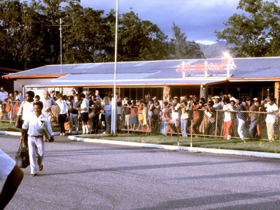 As a result of the late flight, our group was somewhat late and untidily dressed for a barbeque dinner hosted for us by Prime Minister Michael Somare at Parliament House, although the Prime Minister was most understanding and gracious in accepting our apologies. Our overnight accommodation was provided by the Davara Hotel, on Ela Beach in central Port Moresby.