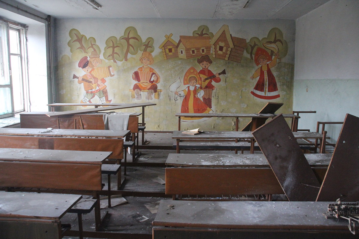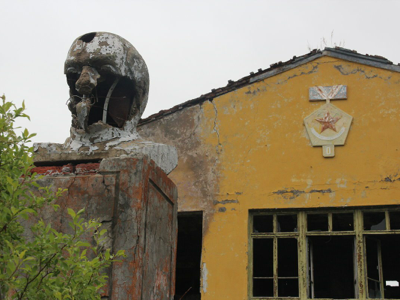 The two most interesting buildings for me were the high school and the government administration building. The high school still had books, posters, furniture and some fittings evident (somewhat like Pripyat, near Chernobyl, though not as intact as Pripyat), and also some wonderful wall murals. The government building (appropriately located at 1 Lenin Street) also had some impressive murals as well as books and government papers just lying around on the floor. There was even a pile of cheques in envelopes, addressed and ready for posting, but never sent.