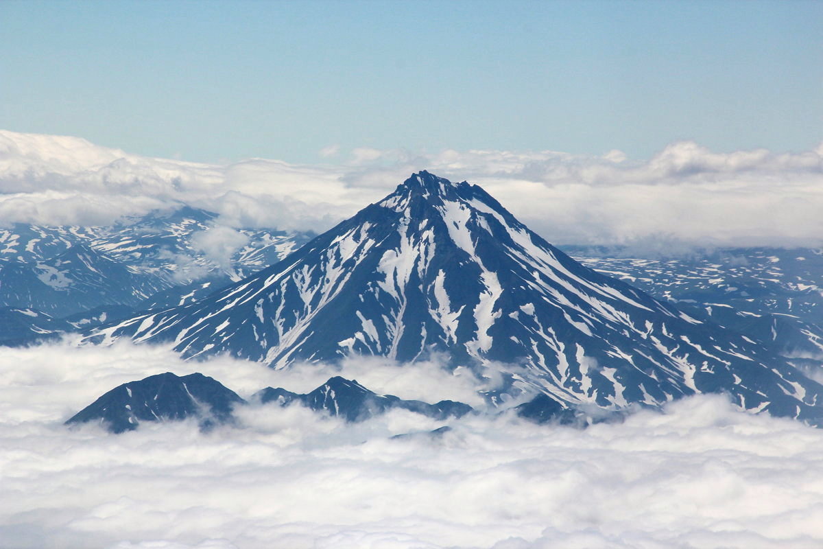 I should not have worried. The weather did improve a little, although it never managed to rise to yesterday’s impeccable quality. Nonetheless, there were some fine views of Koryaksky and Avachinsky as we took-off, and after completing a circuit of cloud-covered Avacha Bay, some great views of Kamchatka’s glacially-shaped mountains that form the peninsula’s central spine.