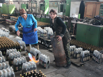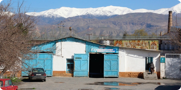 Leaving the market, we drove towards the east, stopping in a rural area just west of the village of Hussar where a winery was located. Known as the Parandis winery, this rusting factory began in Soviet times, and in its heyday was producing 700 tonnes of wine for distribution throughout the USSR. Now privatised and clearly starved of investment funding, the factory now produces about 10% of its Soviet-era output, and distributes only within Tajikistan.