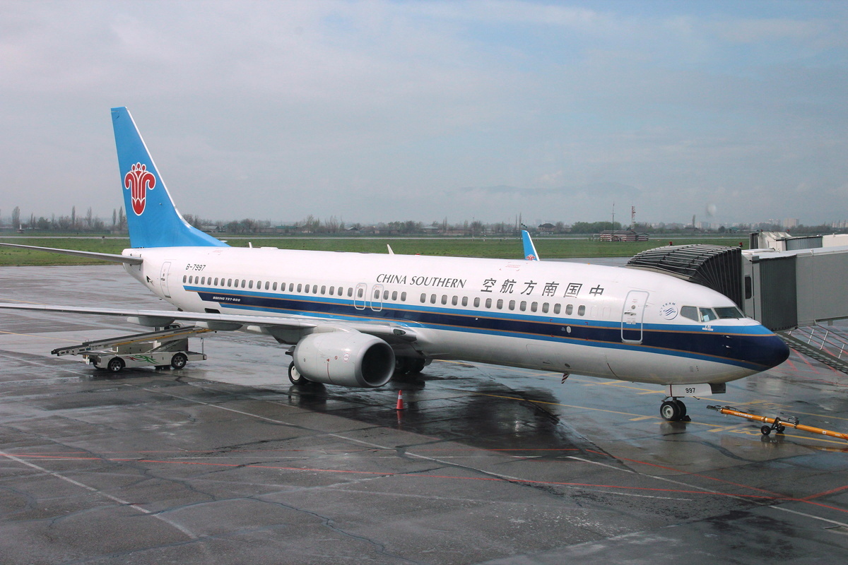 Our flight to Urumqi was in a new China Southern Airlines Boeing 737-800. Unlike the flight from Urumqi to Dushanbe, this flight was somewhat turbulent, and for most of the journey the mountains below were obscured by cloud. When the mountains were visible, there was notably more atmospheric haze than the previous week, and also noticeably less snow on the ground.