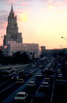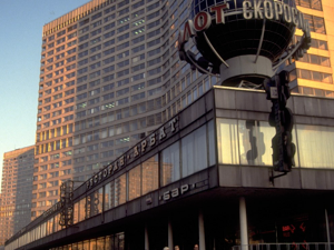 We had a fairly late lunch at the Cosmos Hotel followed by a fairly leisurely afternoon. Our first stop was a souvenirs/ arts and crafts shop (but quite a good one), and then Arbat Street. Arbat Street is an old, well preserved street to the west of the kremlin that has been closed off to traffic and opened up to arts and crafts stalls. The street was converted into a pedestrian plaza in the late 1970s. Frankly, it was a bit too touristy for my personal taste, so I walked up to Kallinn Prospekt instead. This large roadway was only a couple of blocks from Arbat Street, and interestingly was recently re-named New Arbat Street because Mikhail Kallinin is now out of favour – he was a key ally of Josef Stalin until his death (amazingly of natural causes; cancer) in 1946.
