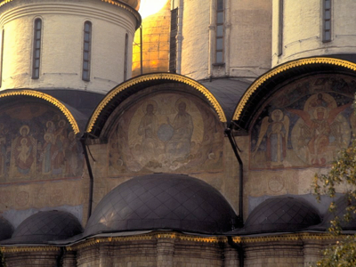 The Moscow Kremlin is an architectural treasure house. , with beautiful gold-domed churches, cathedrals and bell towers, lovely classical buildings, the world’s largest cannon and bell (two different objects), and so on. We went inside the Assumption cathedral and the interior can only be described as extremely lavish, with gold and icons everywhere, along with colourful frescoes and murals. Our guide, Galina, is extraordinarily well-informed about Russian Orthodox imagery – I suspect she is a practising Orthodox, but of course she won’t confirm or deny this.