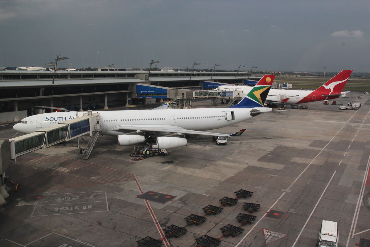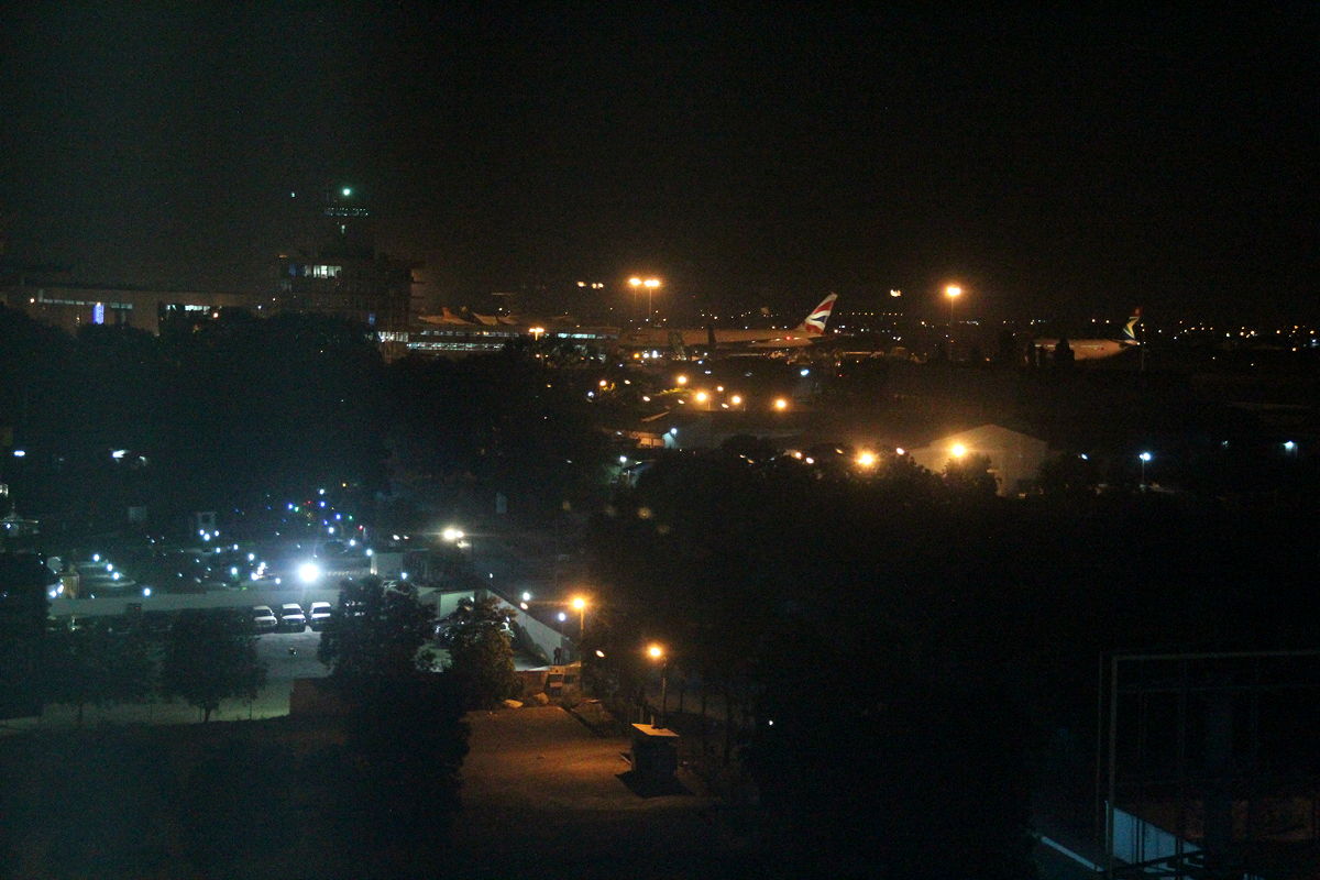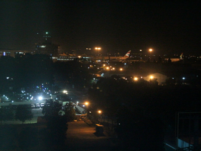 The photo to the right shows the airport from the hotel - sadly looking in the opposite direction to the view from the window of my room. If you look carefully, you can even see the tail of my South African Airways aircraft.