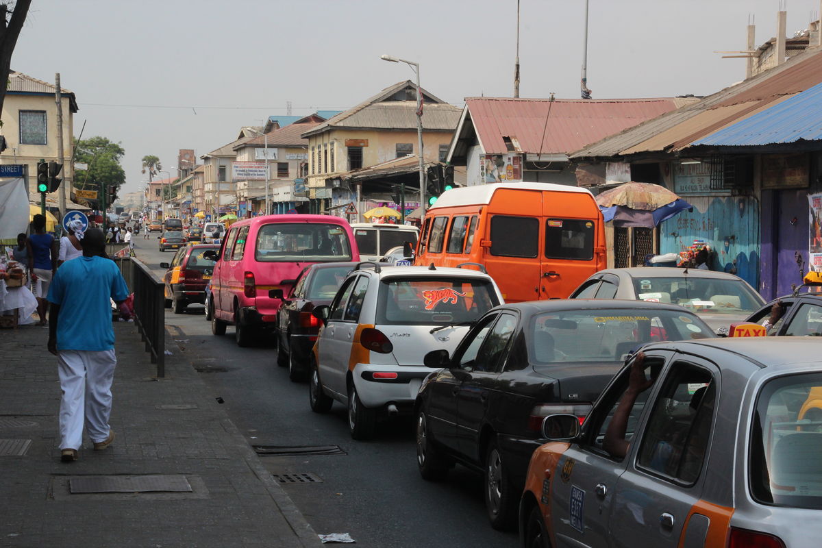 Despite these less than enticing writings, I thoroughly enjoyed my walk.  I loved the juxtaposition of the old British colonial buildings (in varying states of disrepair) with the bright colours of the people’s dress, the orange soil and the blue skies, vibrant street-side markets, and the relaxed friendliness of the people.  With signs in English everywhere, Accra lived up to its reputation as a very gentle introduction to West Africa.