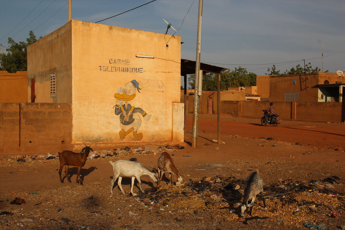 The streets were similarly fairly quiet (this was a suburban neighbourhood, after all), but interesting nonetheless.  The streets were wide, having been laid out in a grid pattern during the French colonial era.  They were unpaved and dusty, and lined by high walls that hid the yards and houses behind from street view.  Cattle and goats roamed fairly freely, foraging through the extensive piles of garbage that took up much of the space in the streets – this place clearly does not have a waste collection service!  Not only cattle were foraging through the garbage – small children whose parents were unemployed were sorting through the garbage too, trying to scavenge small pieces of charcoal to take home for use as a cooking fuel.