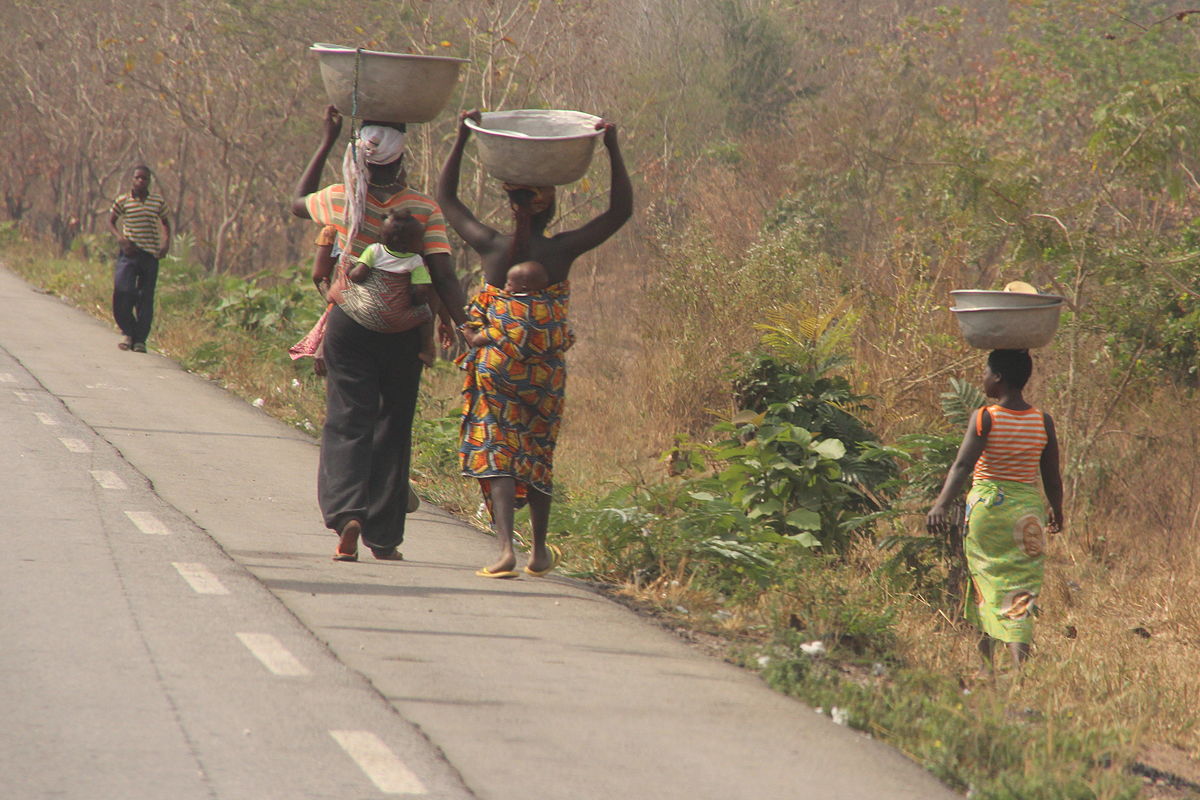 The highway passed through lots of small towns at fairly frequent intervals, many with a clear Christian influence in contrast to the Muslim dominance in the Sahel.  Towns in different areas seemed to specialise in different products judging by the small stalls beside the roads – yams, charcoal, tapioca, cassava and gari (which is a product of corn) seemed to be the main specialties.  From time to time, we had to swerve to avoid hitting children who would run onto the road holding up a dead bird, a rodent or a rabbit that they had caught and wanted to sell to a passer by for food.