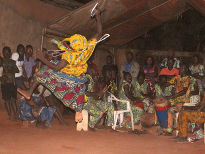 Harouna kindly drove Andrew, Mama and I along the dark, unlit streets to the small neighbourhood where the dancing was to take place.  The musicians (almost all of whom were drummers) were already playing when we arrived at about 7:10 pm, and we took our places on some plastic chairs that were provided.  The local community gathered slowly – first the adults, then the children, and finally the elderly - and at about 8:15 pm the action finally began.  This was no tourist special - it was part of a voodoo ceremony that would have been happening whether we were present or not.