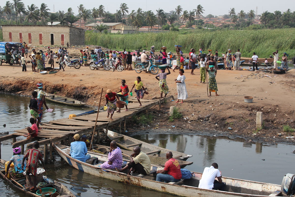 At a little after 2:00 pm, we reached the outskirts of Cotonou, Benin’s largest city, its economic capital and its seat of government – but not its capital, which is Porto Novo, to the north-east.  The district we entered was known as Abomey-Calavi, and it was the embarkation point for the small pirogue that we would use to take the eight kilometre journey across the waters of Lake Nokoué to Ganvié.