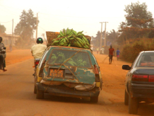 On the first half of the journey (from Abomey to Allada), the sealed road progressively deteriorated with bigger and bigger pot holes until the was no more than a very rough dust track.  Some of the pot holes were as large as a car, as we saw when a blue Peugeot disappeared from sight.  To add to the challenges, we had to negotiate swarms of ‘France au revoir’ cars swerving all over the road at high speeds trying to avoid pot holes – seeing three cars swerving across the road but heading straight for you at the same time was a bit unnerving at times.  And then there were the crashed or broken down trucks that added to the obstacles, in some areas perhaps two or three per kilometre.  I managed to get some video footage through the front windscreen of some of the sections of the trip; viewing is not for the faint hearted.