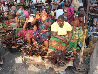 By the time we disembarked and returned to the car to complete the drive into Cotonou, it was almost 4:00 pm.  Mama suggested that we go to the hotel, check in and have lunch before meeting again to visit Cotonou’s huge market, but Andrew and I immediately agreed that we would prefer to see the market in daylight (i.e. before it closed) and that dinner after the market would be better than a lunch starting at 4:30 pm.