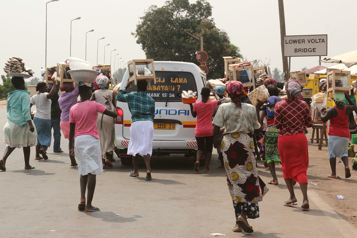 However, that was where the joy of entering Ghana started to diminish.  The processes with the car seemed to take an inordinate amount of time, even allowing for the fact that Harouna had to obtain an international driving licence to enter Ghana.  Having arrived at 8:10 am, we didn’t get away until three and a half hours later (at 11:40 am) – a long while to stand around in a hot, humid, dusty, parking area with no shade, fending off CD salesmen, shoe polishers and repairers, beggars, and an entourage of eight hangers-on who stood around doing nothing whatsoever later demanded payment for their time and ‘services’.