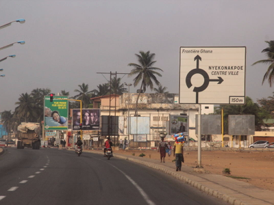 The drive from our hotel in Lomé west to the Ghanaian border took just three minutes.  We had to exit Togo as the first step.  As we approached the border our car was surrounded by men running and shouting through the window.  Some were wanting to sell us SIM cards, some to exchange money, while others were competing to be our helper through customs and immigration.  Several were trying to direct us to ‘their’ parking spots, which was entrepreneurial if a bit intimidating.  As we have found at previous border crossings in West Africa, there is a total absence of signage, perhaps to allow the growth industry of local people showing confused foreigners through the labyrinth of non-sequential officialdom.  Or, if you were cynical, perhaps you might suggest that it is to encourage mistakes and omissions so that the foreigner has to pay a small fee to correct the ‘problem’.