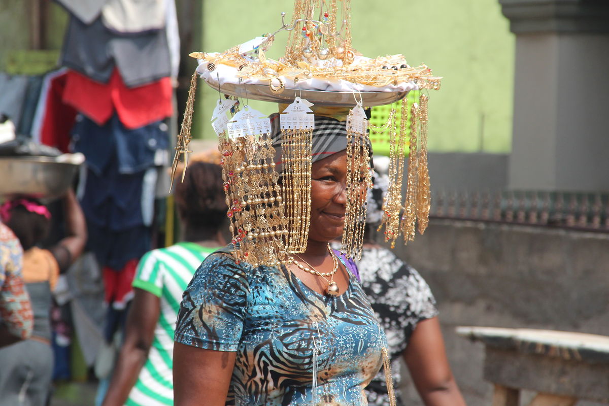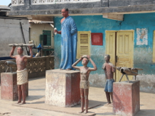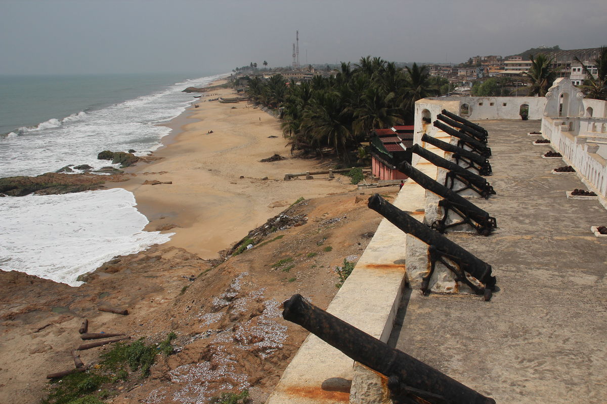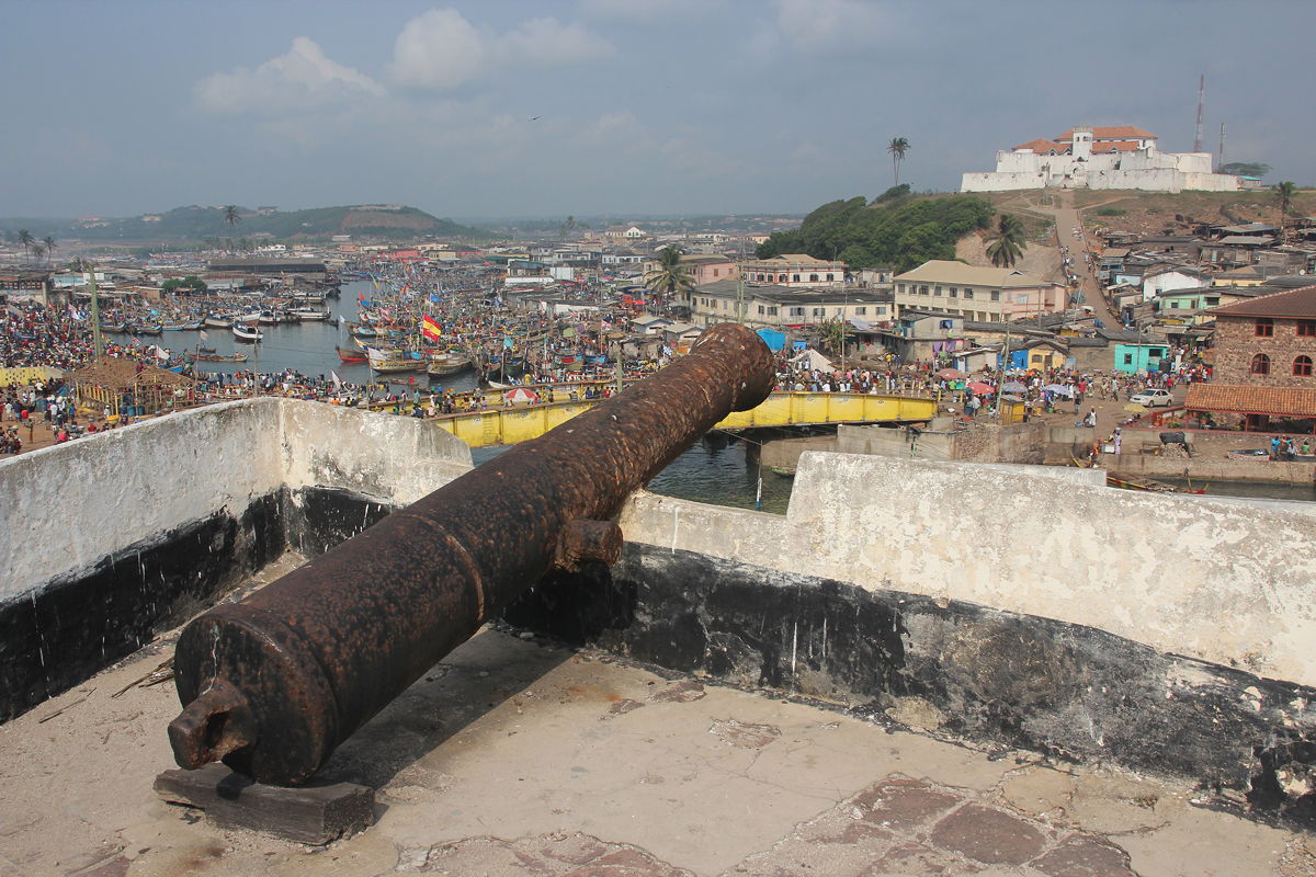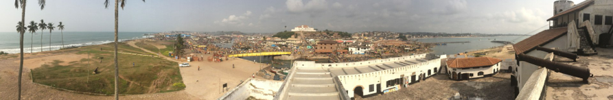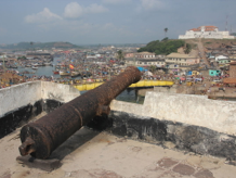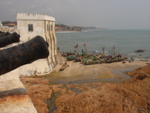 After our tour of the castle finished, Andrew and I did some more exploring on our own, climbing up to enjoy the view (and the very welcome sea breeze) from some of the elevated defence walls as well as exploring the excellent, informative museum of the history of Cape Coast, the evolution of the slave trade (featuring a mock up of slaves’ cramped conditions on the ships), a description of local Fante culture and a brief outline of modern Ghana’s economic progress.