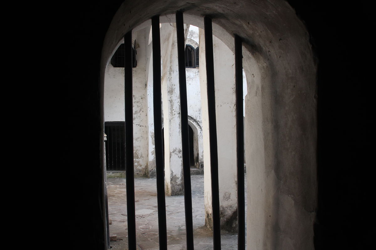 We were shown around the castle by a guide, and his description was informative and moving. We began by experiencing the underground dungeons where slaves would have to wait for between two to twelve weeks (depending on the shipping schedules) in appallingly dark, cramped conditions, with a river of urine and faeces running down the middle of the room and out through a pipe into the ocean. We noted the huge contrast between the condemned prisoner’s dark, sealed cell and the lavish bedroom and living room enjoyed by the Governor, several floors above with its panoramic ocean views.