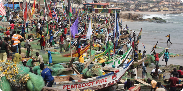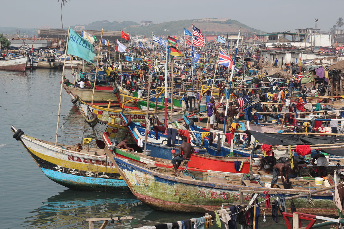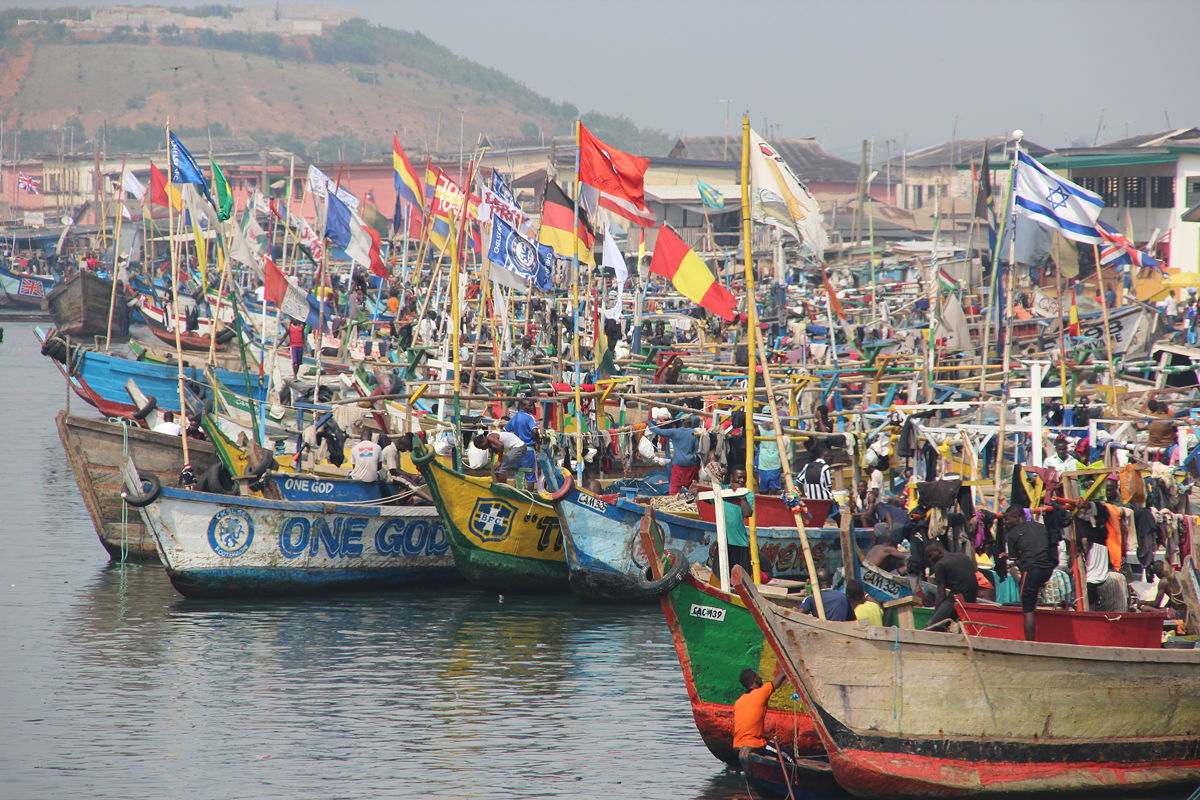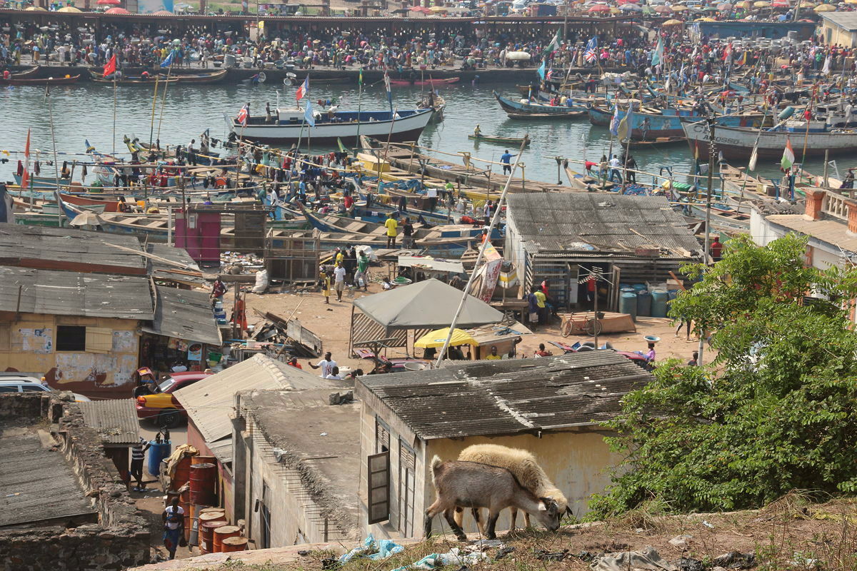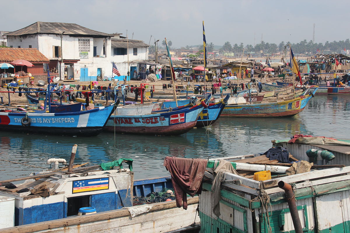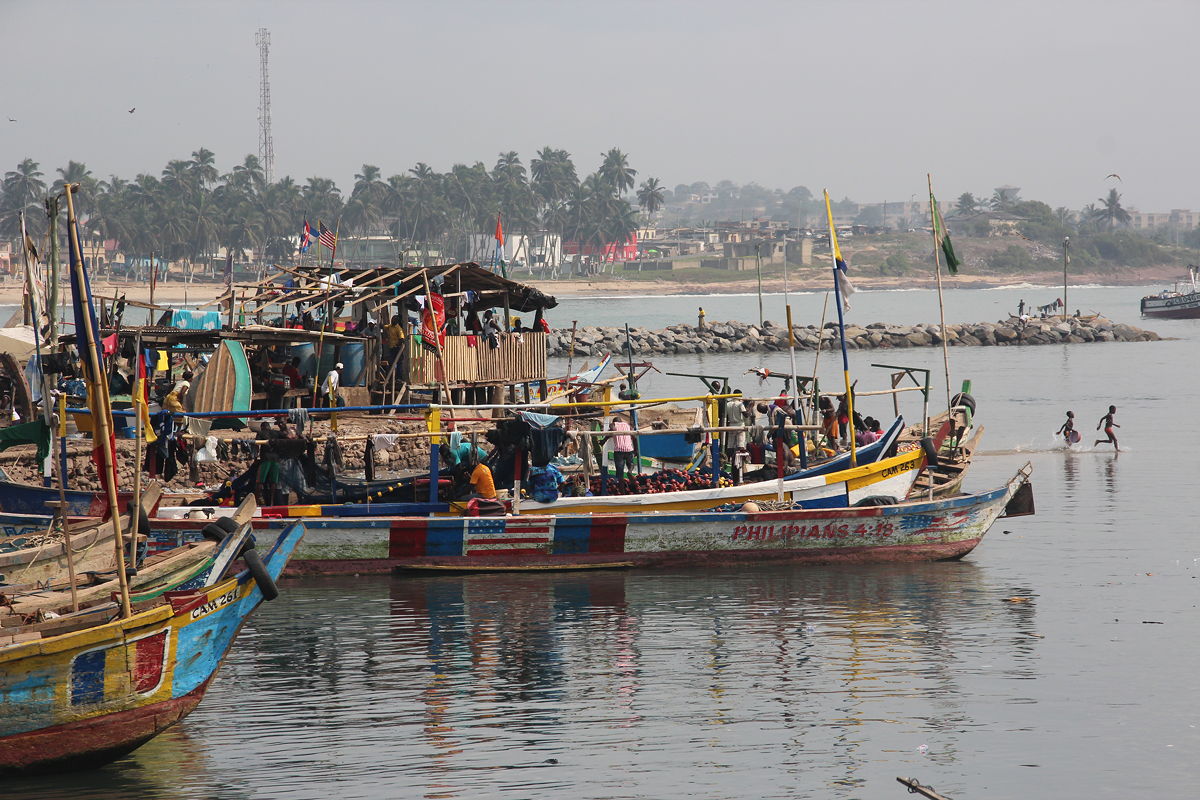 After yesterday’s long, smoky drive, it was great to get out and walk today, to learn some important history and to experience something of the colourful fishing culture of coastal Ghana. Yes, today was a much better day than yesterday.